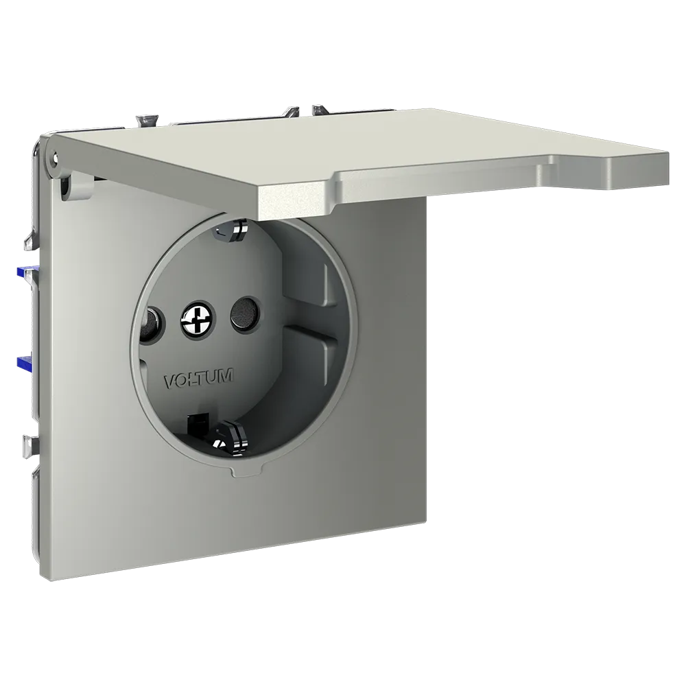 Розетка VOLTUM S70 с заземлением и защитными шторками и откидной крышкой  — это решение максимальной безопасности и эстетики для современного интерьера. Идеально подходит для детских комнат, ванных, прихожих, кухонь и уличных зон под навесом, где важна защита от пыли, брызг и случайного контакта с токоведущими частями.
